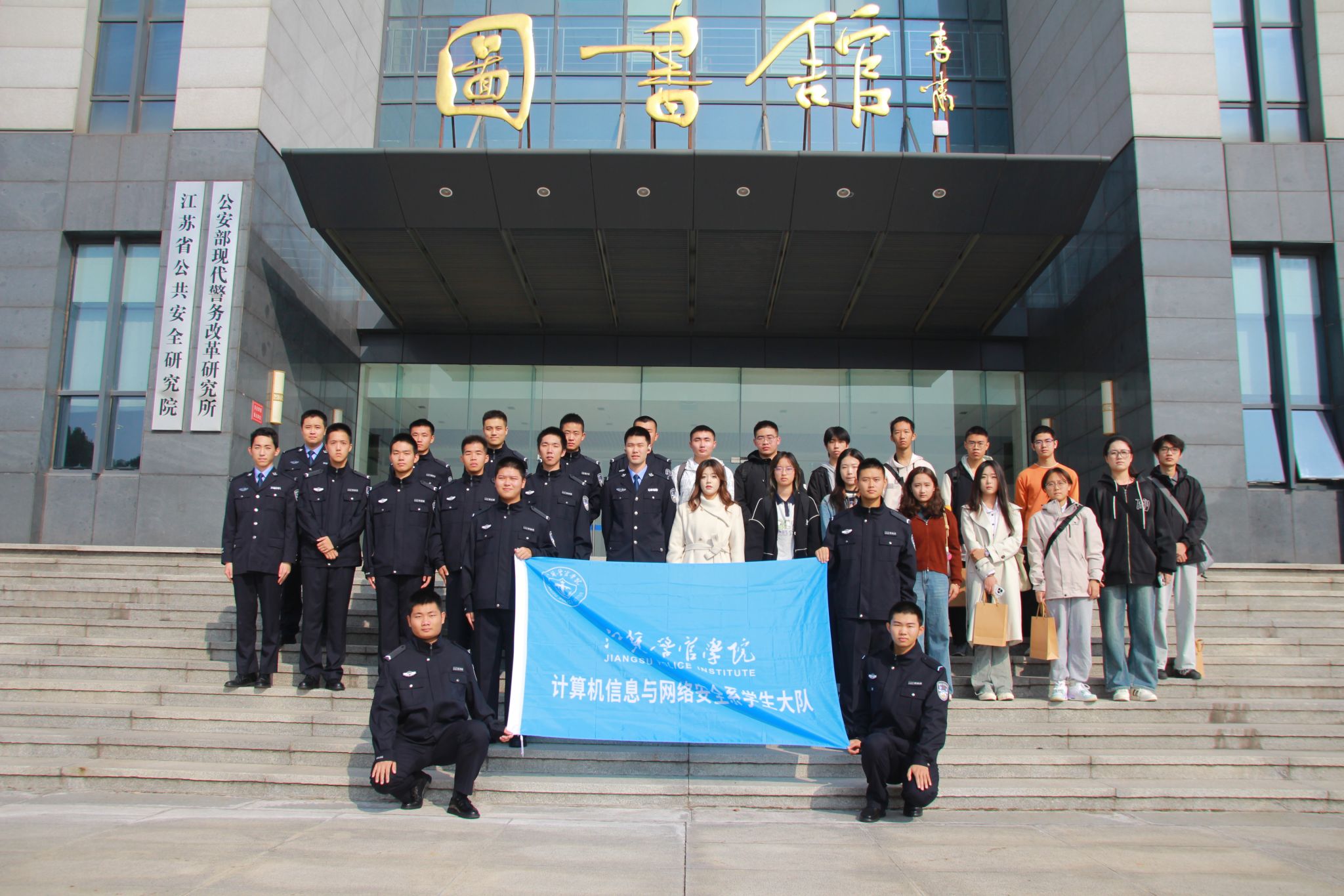 活动在江苏警官学院图书馆前拉开序幕。双方在学院图书馆前集体合影,定格交流瞬间;随后沿着校园景观路线游览,途经图书馆、教学楼等标志性地点。我院学生深刻了解到江苏警官学院的学校底蕴与校训精神。