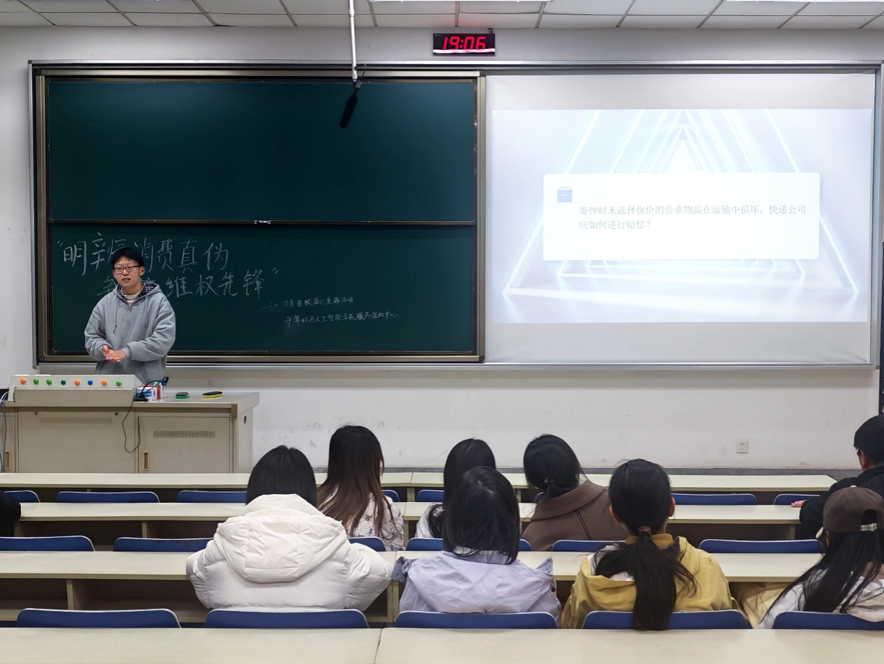 本次活动以趣味互动为核心,设置知识互动问答、真假辨别两大游戏环节,将消费维权知识与反诈科普融入沉浸式体验。知识互动问答环节围绕同学们日常高频的网购、快递场景展开,“购买过期食品可获几倍赔偿”“消费者热线电话是多少”“快递维权的有效途径”等问题接连抛出,现场同学踊跃抢答,在问答中厘清消费维权的关键知识点,部分同学还主动分享了自己的消费与维权经历,引发现场共鸣。